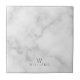 Adicione um toque de estilo exclusivo à sua decoração doméstica com este Marble Branco com Monograma Personalizado e Nome Monograma de Apresentação de Materiais Cerâmicos e nome no estilo de fonte de sans serif moderno da cinza em fundo de mármore branco.