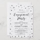 Celebre o seu dia especial com este convite de noivado moderno e elegante. Este design apresenta confetes estilizados e tipografia com um fundo texturizado em mármore. Mais convites e suprimentos para festas estão disponíveis na minha loja BaraBomWedding.