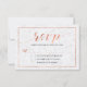 Este design de placa RSVP na moda apresenta tipografia de cobre quic com um fundo texturizado de mármore. Mais itens correspondentes disponíveis no meu compro para completar a sua suíte de casamento.