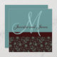 Convite de casamento "Floral Damask Blue Brown" por Elke Clarke ©2010. Mais designs disponíveis em WhiteWhimsicalWeddings.com e WhiteWhimsicalWeddings.blogspot.com. Personalize com seus nomes de monogramas e cores de casamento. Adicione todas as suas informações de casamento na parte de trás do cartão usando os prompts de menu fáceis de usar do Zazzle.