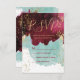 Marsala moderna, elegante e chic vermelha e lavada com cores lacrimejantes de arte teal com malhas estampadas de ouro, placas RSVP. Este design clássico e sofisticado é perfeito para qualquer evento de na moda e tendências, incluindo casamentos e ocasiões cotidianas.Personalize com sua própria mensagem na frente assim como um monograma personalizado na parte de trás. Todas as impressão de fotos.