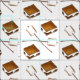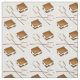 Tecido apresenta marshmallows torrados em palitos, entremeados com chocolate e guloseimas de marshmallow. Criado de uma série de ilustrações originais.