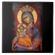 Imagem vítrea de Maria segurando Jesus bebê em seus braços. Ícone da Igreja Católica Oriental.
