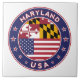 Crachá de Maryland com bandeira de Maryland e bandeira de cores dos EUA, forma arredondada. Emblema de Maryland. Selo de Maryland. Coleção dos Estados Unidos.