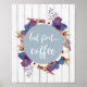 Mas primeiro café, Flores, Azul, Russo, poster de Madeira 8"x10"