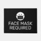 Máscara de rosto é necessário o sinal do tapete da porta para compro. Portas de boas-vindas personalizadas com sinalização de aviso. Adicione seu próprio texto. Sinal de tapete de entrada personalizado para entrada, varanda, novo lar, compro, loja, negócios, escritório, café, bar, restaurante, empresa, escola, hospital, clínica, dentista, lar de enfermagem, etc. Sorriso preto e branco com facemáscara médica ligada.