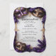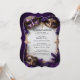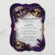Convide convidados para uma noite inesquecível de mistério e celebração com este luxuoso convite à Mascarada Quinceañera. Projetada em tons roxos reais e metálicos de ouro, esta carta apresenta máscaras de carnaval veneziana ornamentado, sotaques de penas reluzentes e padrões barrocos ricos. Perfeito para uma dramática celebração de salão ou tema de mascarada, este convite dá um tom real para um doce evento de quinze, cheio de elegância, tradição e encanto.