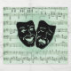 O talento artístico vem em muitas formas e quando se unem é espetacular. As máscaras de comédia e tragédia no teatro grego estão sobre uma folha de música