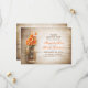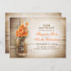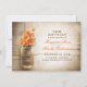 belos cartões salve a data rústicos com fundo de madeiras em apuros e jarro de pedras com flores cor de laranja. Eu sugiro um belo papel de textura de linho para este design.