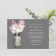 Perfeito para um casamento no estilo country ou talvez você apenas ame Mason Jars! Mason Jar pendurado num gancho cheio de flores selvagens do campo. Uma Legal Cinza de carvão contra o enforcamento de Mason Jar e flores silvestres em cores de margaridas rosa e brancas. Se você tiver alguma dúvida sobre este design ou quiser uma mudança de cor, envie um e-mail para mim paula@labellarue.com Além disso, verifique se os Cartões SENTADOS RSVP, RECEPÇÃO e CONVIDADO correspondem!
