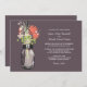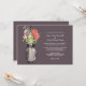 Perfeito para um casamento no estilo country ou talvez você apenas ame Mason Jars! Mason Jar pendurado num gancho cheio de flores selvagens do campo. Um fundo de ameixa (ds328-3) desbotado antigo contra o enforcado Mason Jar e flores silvestres em cores de tons de Coral, Creme e Verde. Se você tiver alguma dúvida sobre este design ou quiser uma mudança de cor, envie um e-mail para mim paula@labellarue.com Além disso, verifique se os Cartões SENTADOS RSVP, RECEPÇÃO e CONVIDADO correspondem!