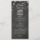 Modelos de Cartões de Rack de Menu de Casamento - Luzes de String Mason Jar & Vintage Elegantes com Fundo de Quadro Preto Grunge. Um Design perfeito para o seu grande dia. Todo estilo de texto, cores, tamanhos podem ser modificados para ajustado das suas necessidades!