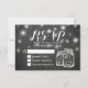 Modelos De Placa De Resposta RSVP De Casamento - Luzes Elegantes Mason Jar & Vintage String com Fundo Grunge Black Chalkboard. Um Design perfeito para o seu grande dia. Todo estilo de texto, cores, tamanhos podem ser modificados para ajustado das suas necessidades!