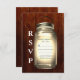 Um Rustic Mason Jar em um fundo de conselho de celeiro escuro decora este RSVP. Isso facilmente elogia o casamento rústico, country, verão ou celeiro e se coordena perfeitamente com o Convite de Casamento Mason Jar.