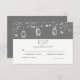 cartões de resposta de casamento com pirilampos, frascos-pedras, lanternas e galhos de árvores. Uma mão bonita desenhou o cartão RSVP de casamento.