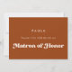 Um cartão de texto simples e elegante que mantém para obrigado a sua matriz de honra. Um tema retro-chic: adote este design de vintagem e na moda para tipografia para sua papelaria de Casamento, com um tema de cor laranja queimada. Fácil de misturar e combinar com nosso material de papelaria semelhante, disponível em açúcar cor-de-pêssego, terracota e castanho. Cores de texto e planos de fundo totalmente personalizáveis.