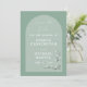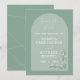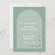 As Matizes Verdes De Arch Moderno Salvem O Cartão De Data. Matizes verdes com arco. Fontes de script e serif. Flores brancas e texto branco. O dorso tem linhas de azul claro. Design moderna e minimalista. Personalize com seus detalhes de casamento.