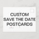MATTA personalizada impressa personalizada SALVE A DATA CARTÃO POSTAL Modelo de 5,6" x Vazio de 4,25". Design, crie, faça o seu. Sua foto, imagem, texto, logotipo, gráficos no impressão CMYK de cor de cheio de ponta a ponta em ambos os lados da placa postal. MATTA: 17 pt de espessura/120 lb de peso. Acabamento de mate branco claro, sem revestimento, com textura de casca de ovo que é fácil de escrever e que não borra. Feito e impresso nos EUA. Melhor para salvar a data, anúncios de bebê, novo endereço residencial, obrigado, aniversário e Convites de festas, férias e Viagem.