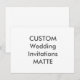 Convites personalizados para casamento de MATTE - 6,25" x 4,5". A escolha de papel mais popular, a textura de casaco de ovo de Matte é macia ao toque com um acabamento suave que fornece o pano de fundo perfeito para os designs escolhidos. 120 lb, 17 pontos com espessura. FEITO NOS EUA. Grande economia de desconto de compra múltipla de comprar em massa em cartões de convite, até 50% das suas compras para várias encomendas de itens. Central de Casamento Personalizado - Crie, faça, design seus próprios convites de casamento personalizados a partir deste vazio de cartão de convite do Zazzle, personalizado e totalmente personalizado.