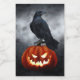 A design apresenta uma assustadora abóbora mau e corvo preto sobre um fundo texturizado de cor escura, cercado por um nevoeiro estranho. Perfeito para festas de Halloween ou favores.