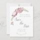Flores Mauve e lavanda com espadilha de samambaias rodeiam o anúncio da sua próxima data de casamento. Uma maneira romântica de pedir aos convidados para guardarem o vosso encontro, personalizarem o nosso cartão com a vossa própria data de casamento e localização.