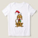 This adorable illustration features Max the Dog sitting patiently, fully embodying the holiday spirit—even if he looks slightly confused by it all! He is dressed in a floppy red Santa hat and a chunky red collar, which is charmingly adorned with a green Christmas ornament. Max's classic, expressive eyes and loyal posture make this image the perfect, heartwarming graphic for anyone who loves the true hero of the Grinch story!
