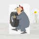 Este design é um mecânico que leva um pneu. O mecânico está em seus macacões dos mecânicos e está guardarando um pneu. Este mecânico que leva um design do pneu olha grande no este cartões