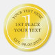 Medalha de ouro redonda, primeira imã de geladeira de prêmio para o número um. Ouro brilhante Faux para 1 rua vencedor. Adicione seu próprio texto personalizado. Ideia elegante de presente para vencedor do concurso, campeão do jogo, realização do esporte, campeão do escritório, melhor atleta, melhor equipe escolar, promoção do trabalho, Festa de aniversário do garoto, jogos de casamento, torneio, funcionário do mês, a maior coisa do mundo etc. Um medalhão personalizável num concurso. Faça um para o segundo e o 3º lugar também com este modelo.