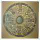 Azulejo com uma imagem de um medalhão medieval adiantado do ouro no ouro escovado que carregam sinais da erosão e que tem, nos lugares, um patina do aqua. See que combina em volta da porta copos do arenito. Veja a coleção inteira do azulejo de pedras preciosas & de medalhões na seção HOME.