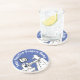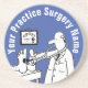 Porta copos divertida mostra médico checando os pés do paciente com um estetoscópio. Personalize com o nome da sua prática ou cirurgia.