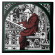 Design de recorte medieval clássico de um monge em uma mesa escrevendo com sotaques verdes e burgundy colados sobre fundo preto para esta tela. A cor do plano de fundo é transparente para que você possa alterá-la de modo a corresponder à sua decoração doméstica.