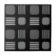 Um padrão de arte de abstrato mcm estilo retrô 1950 com quadrados arredondados e linhas em negrito.