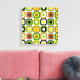 Canvas moderna do século médio, quadrados e círculos coloridos de abstrato escondido em tons de ouro verde, castanho e preto. Uma adição perfeita ao estilo do seu meio século.