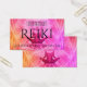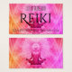 Um design moderno com a meditação de Buda é feito em pinks e roças neste cartão de visita Reiki.