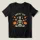 Ilustração única do Halloween de um esqueleto em uma pose de meditação de ioga cercada por crânios, jack-o-lanternas, morcegos e estrelas. Design perfeito, porém engraçado, para t-shirts, capuzes e impressão sazonal a pedido.