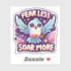 Medo Menos, Soar Mais é um design ousado autocolante que nos lembra de empurrar o medo passado e levantar mais alto todos os dias. Perfeito para quem persegue grandes objetivos com um espírito imparável.