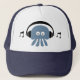 Divertimento & medusa azuis funky do DJ dos desenhos animados com fones de ouvido e boné das notas musicais.?