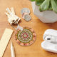 Este design de círculo concêntrico cor-de-rosa e ouro foi inspirado pela médi indiana e figurinos do anime japonês. Apresenta camadas com pétalas de lótus, folhas, paisley e uma roda ornamental à volta de todas elas.