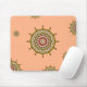 Este design de círculo concêntrico cor-de-rosa e ouro foi inspirado pela médi indiana e figurinos do anime japonês. Apresenta camadas com pétalas de lótus, folhas, paisley e uma roda ornamental à volta de todas elas.