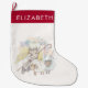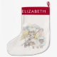 Um critiano temido estoque de natal, personalizado com um nome. Projetado com um anjo doce com asas amarelas segurando um pântano pastor. Sentado com cordeiros brancos. O topo da estocagem é uma cor vermelha de natal e o resto da estocagem é uma cor branca de casca-de-ovo.