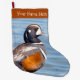 Adicione um toque de elegância e natureza às festas de final de ano com esta estocagem de Natal com o tema da vida selvagem. Personalize com um nome. O reverso (para opção dupla face) mostra design idêntico. Excelente para o pássaro ou amante da natureza na sua lista de presentes! Uma de uma dúzia de Patos Harlequin que tive a sorte de me encontrar na praia, e o meu encontro mais próximo com estes patos-marinhos mergulhadores. Curiosamente, todos eram adultos do sexo masculino, perto ou em cheio, criando uma plumagem e exibindo suas cinzas de ardósia, brancas e ricas penas de canela, mas não havia senhoras da sua própria espécie para impressionar. Fotografado no primeiro dia de cheio de 2017. Baseado na fotografia original de W.H. Sim. Todos os Direitos Reservados. Mais informações em zazzle.com/walkswithnature