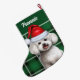 Meia De Natal Grande Bichon Frise Cão Feriado Xadrez Verde Nome do Cão