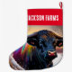 Neste design moderno colorido, um touro angus está em uma paisagem cênica de neve.