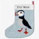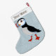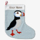 Design de Puffin Bonito Grande Estoco de Natal em fundo de neve com personalização à frente e atrás.