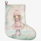 Meia De Natal Grande Cena de Inverno Rosa e Mint