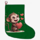 Meia De Natal Grande Christmas Stocking, Monkey Red Hearts Love