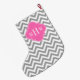 Meia De Natal Grande Cinza Dk Lg Chevron Quatrefoil Quente Rosa Quatref
