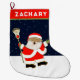 Estocagem exclusiva de Natal de lacrosse com Papais noeis segurando um bastão de lax e uma bola de ornamento. Para personalizar o texto de edição para criar um presente personalizado de manutenção para o seu jogador ou treinador favorito.