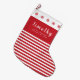 Celebre o Natal de 1rua do seu filho com um estoque de Natal personalizado que pode ser personalizado com o nome dele ou dela mais o ano. O texto branco é definido tanto em uma fonte popular sans serif quanto em uma fonte de script e inclui as palavras ‘Meu Natal de 1rua’. Este design tem um padrão de riscas brancas e vermelhas de amora, além de estrelas vermelhas de amora-branca no topo.
