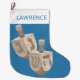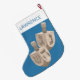 Um encantador acréscimo para famílias de fé, essas meias de Natal personalizadas de Chanucá trazem o Festival das Luzes para suas férias. Cada estocagem personalizada é impressa com um fundo azul escuro médio, um par de sonhos rústicos de olhar de carvalho, uma área de punho branco no topo e uma simples fonte azul onde você pode adicionar o nome da criança. Bonita para crianças e adultos, essas meias de Chrismukkah com simples imagens de sonho e sua personalização são uma forma excelente de combinar feriados para todos. Feliz Feliz Tudo!